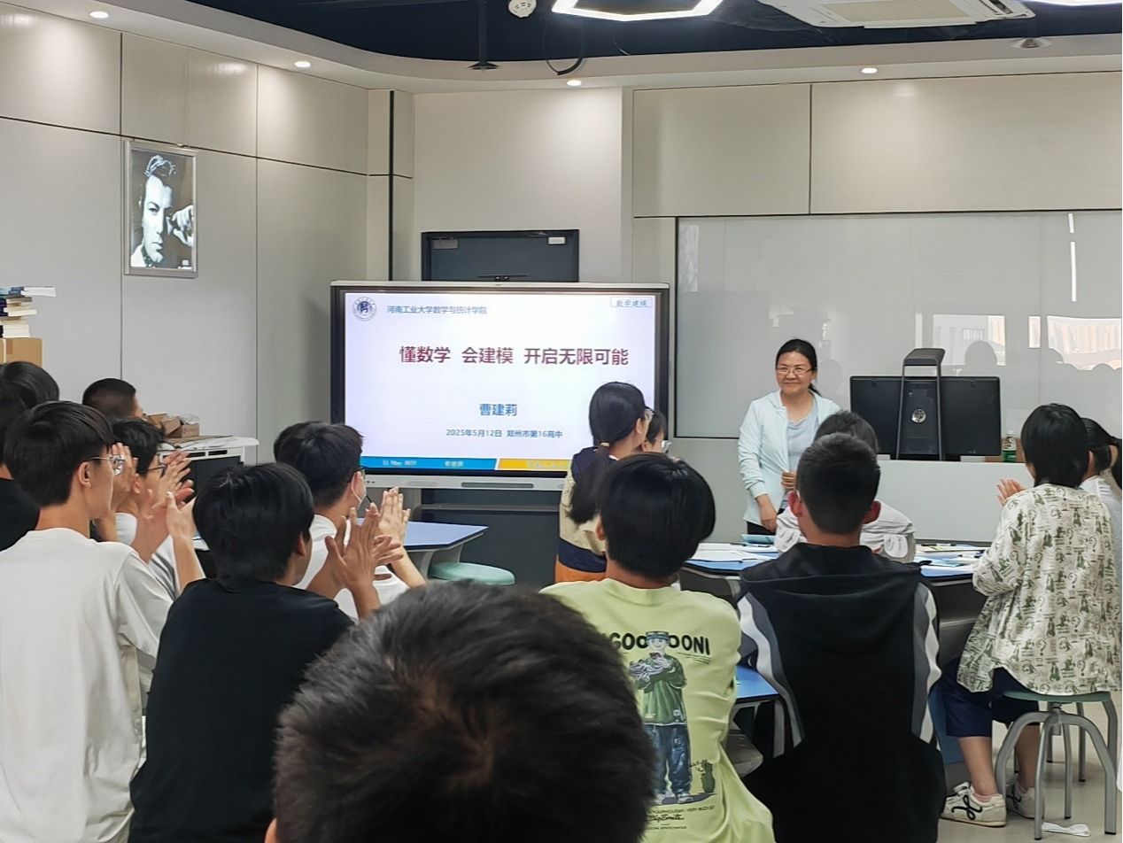 5月12日下午,应郑州市第十六高级中学邀请,糖心vlog 副院长曹建莉教授和冯俊锴博士等一行三人前往郑州市第十六高级中学,开展招生宣传和数学建模科普讲座。本次活动以"懂数学、会建模、开启无限可能"为主题...