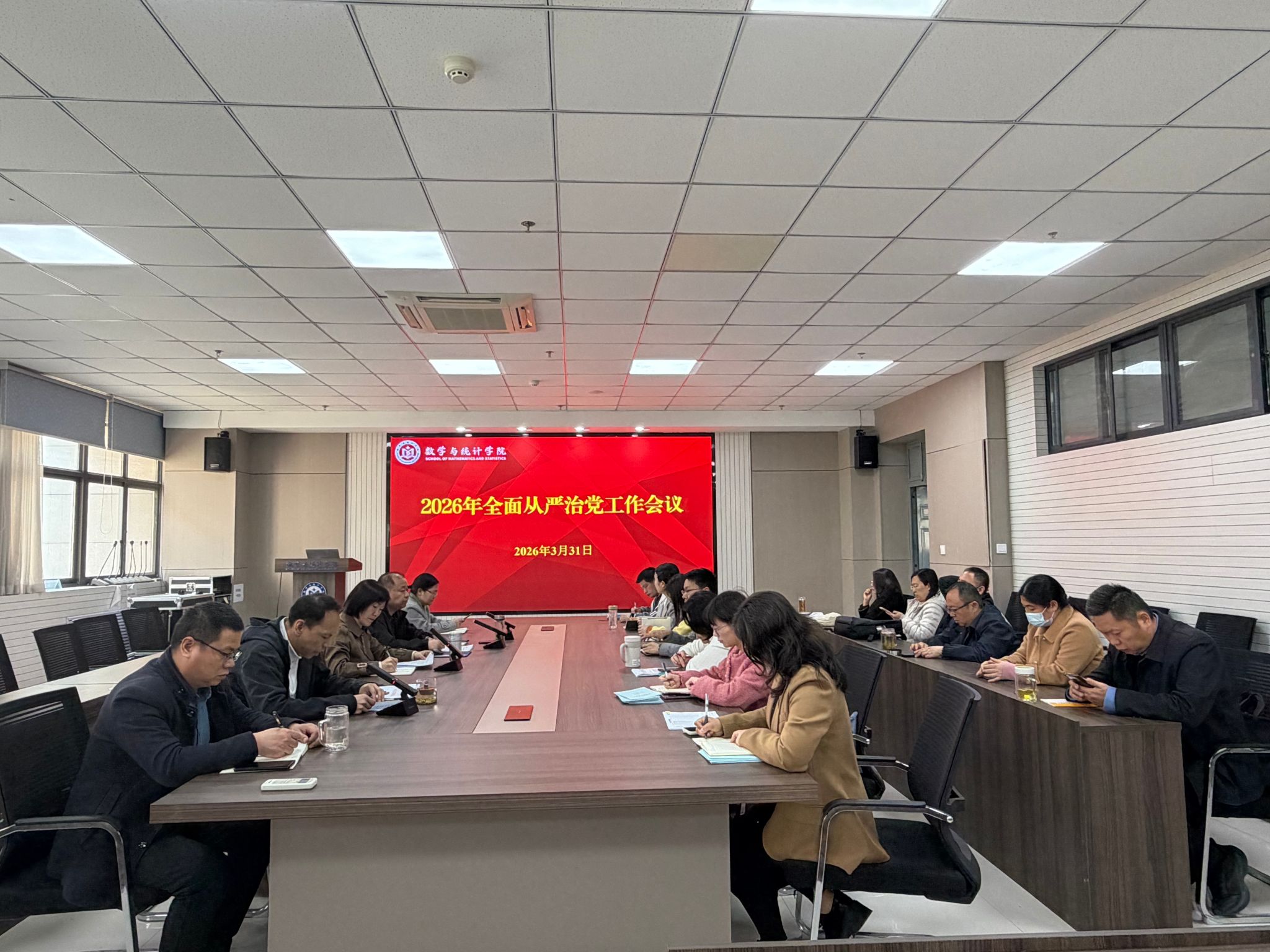 在惟德楼315会议室召开2026年全面从严治党工作会议。学院全体党委委员、纪委委员,全体班子成员,各教工党支部书记,以及各科室、教研室、中心主任参加会议。会议由院长谷存昌主持。