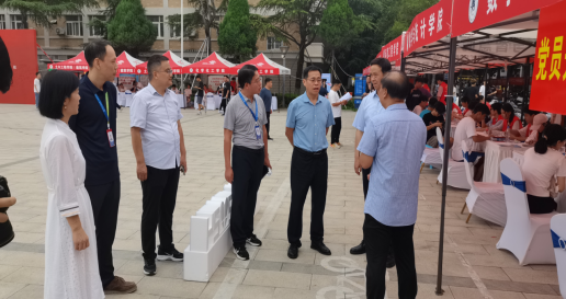 迎新现场,详细询问了学生报到情况,与新生和家长亲切交流,了解他们的报到手续办理情况。