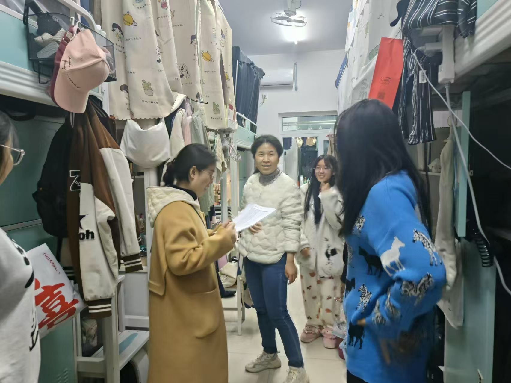全体辅导员、班主任在党委副书记程凯的带领下开展了集中查寝,此次检查重点排查了学生夜不归寝现象和寝室使用违章用电器情况。
