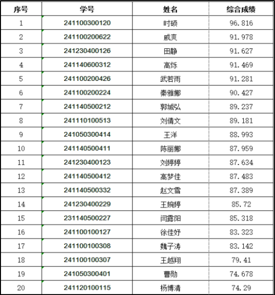 公示时间为2025年9月4日—2025年9月5日。若对结果持有异议,请于公示期内向学院教学办公室提交签有本人真实姓名的书面材料,联系电话:0371-67756560。