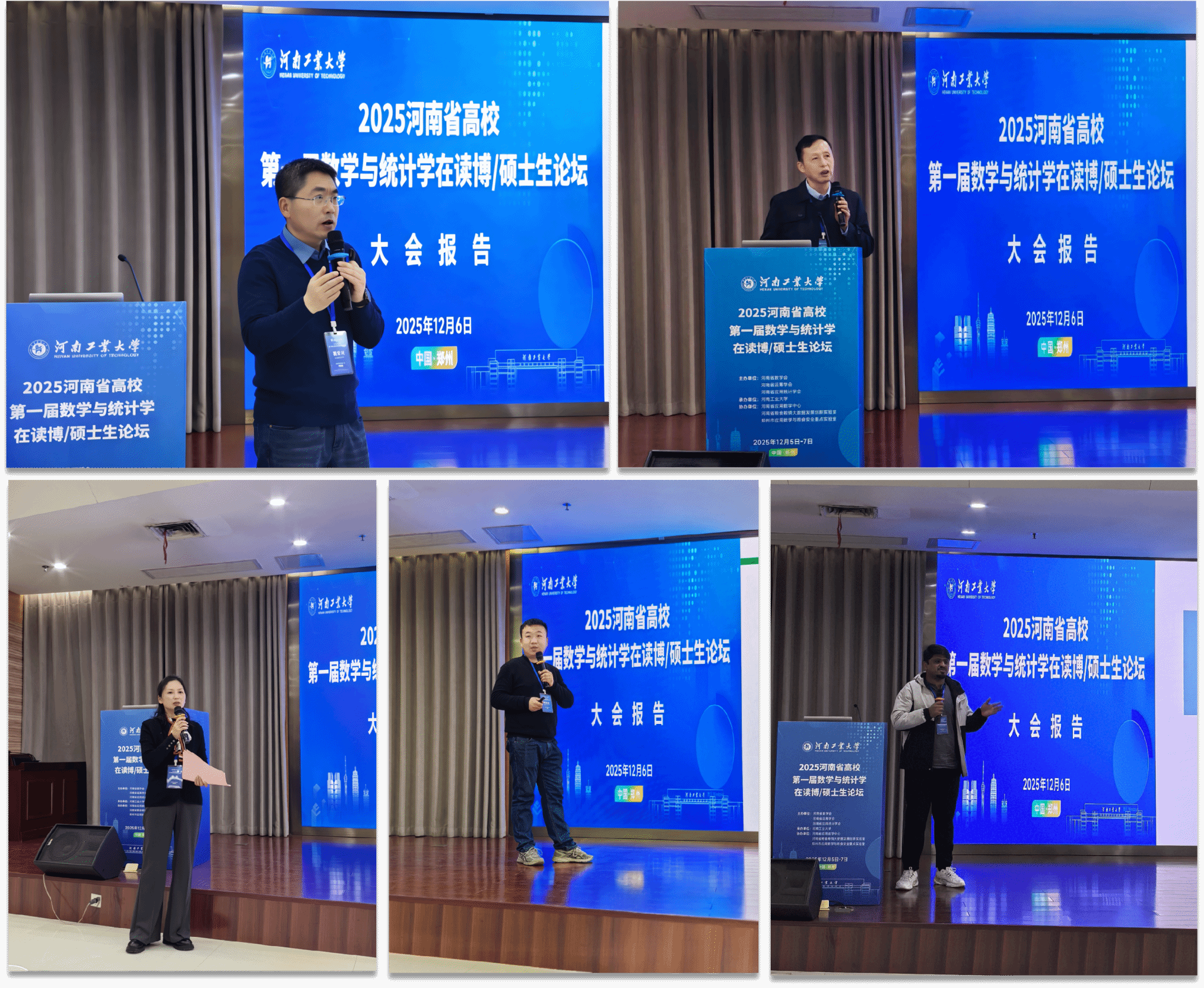 12月5日至7日,由河南省数学会、河南省运筹学会、河南省应用统计学会主办,河南工业大学承办,河南省应用数学中心、河南省粮食粮情大数据发展创新实验室、郑州市应用数学与粮食安全重点实验室协办的“2025年河南省高校第一届数学与统计学在读博/硕士生论坛”在郑州成功举办。论坛吸引了省内外20余所高校近150人参与,促进了高层次人才培养与学术创新。