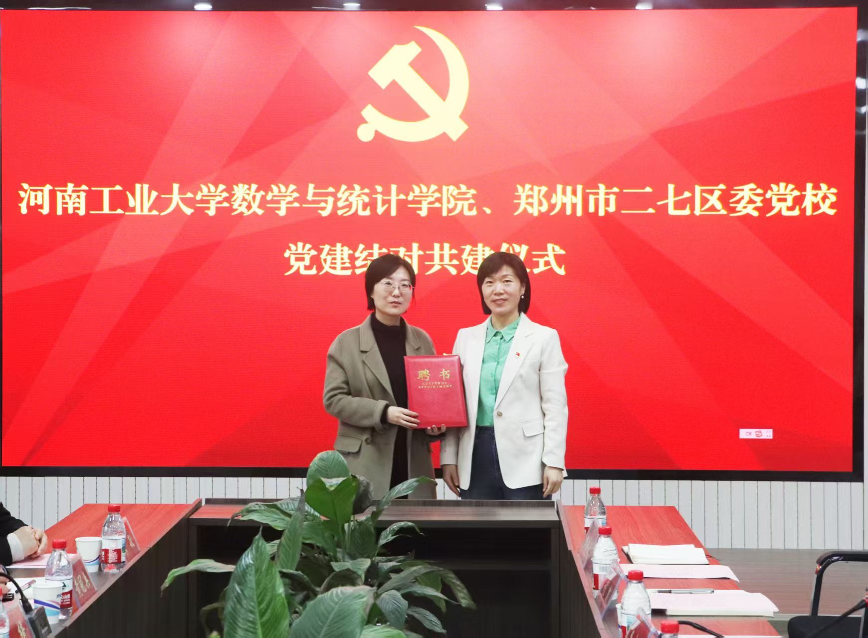 为发挥党建引领作用,构建“资源共享、优势互补、互相促进、共同提高”的党建工作新格局,3月20日下午,糖心vlog 和郑州市二七区委党校党建共建签约仪式在河南工业大学惟德楼315会议室举行。郑州市二七区委党校常务副校长、机关党支部书记张绮及支部成员,河南工业大学党委组织部副部长、人才工作办公室副主任吴春阳,糖心vlog 党委副书记程凯,党政办、团委负责同志以及公共数学教工党支部全体党员参加仪式。仪式由糖心vlog 党委书记郭红彦主持。