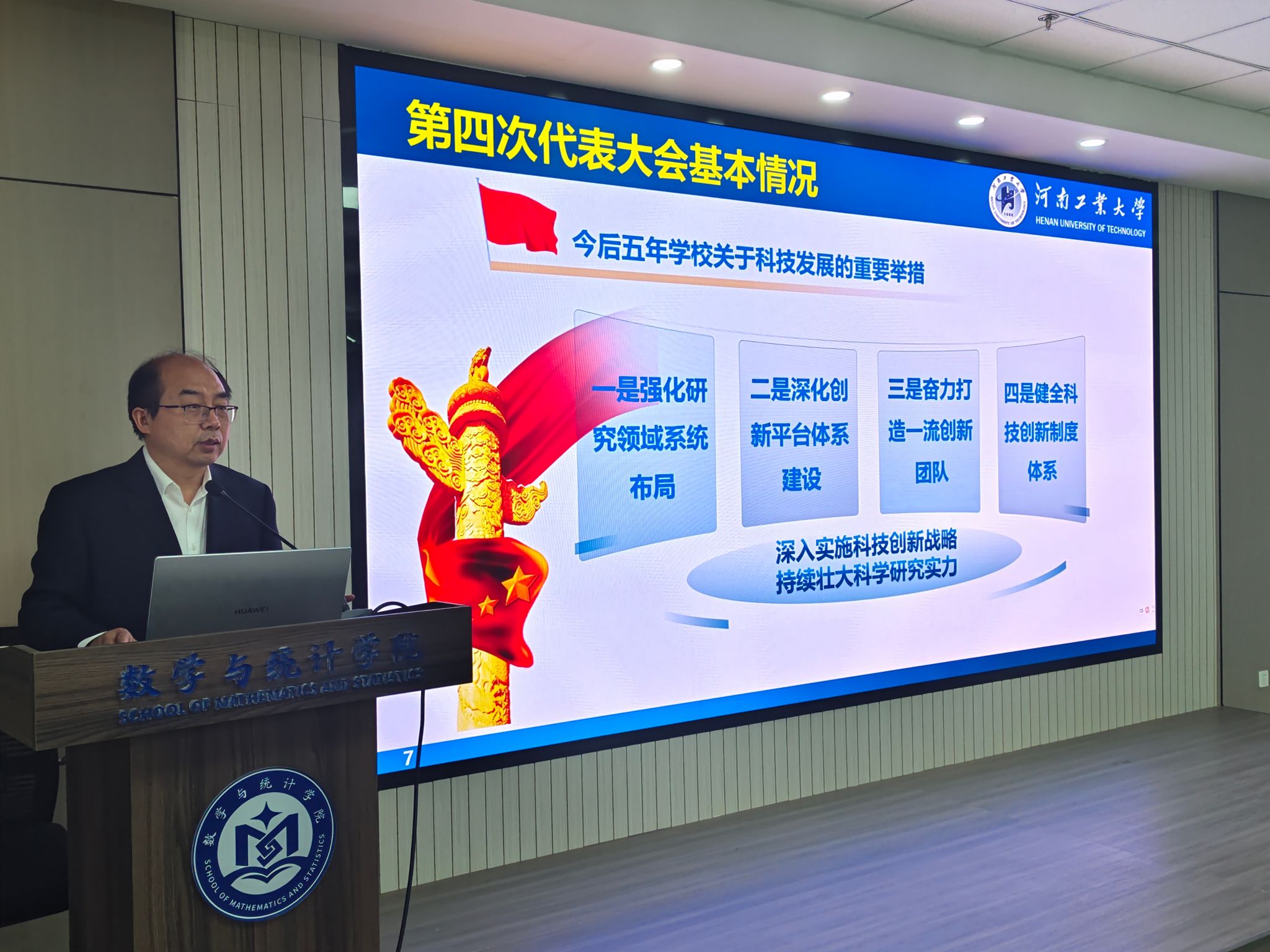 郭红彦在主持时指出,宣讲报告立足发展,聚焦科研,具有很强的针对性和实操性,让大家对第四次党代会精神有了更加全面深刻的理解。她要求学院领导班子和全体教职工立足学院发展实际,把学习贯彻学校第四次党代会精神落实到工作实际中,以昂扬向上的精神面貌和扎扎实实的工作业绩,为学校“双一流”创建贡献力量。