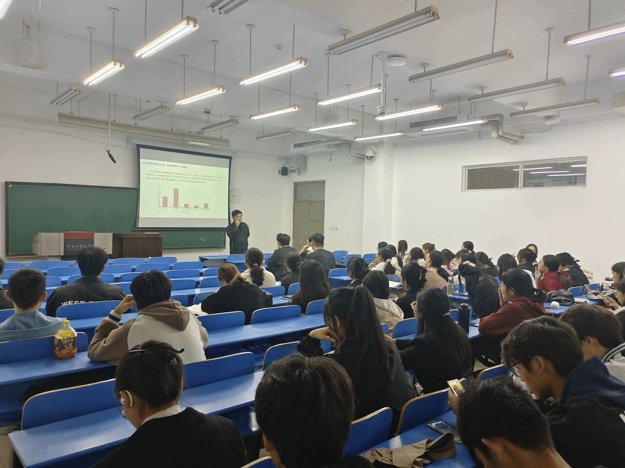 讲座中,黄金辉运用详实的数据介绍了公职考试概况,对国考、省考和选调生考试的报考条件、岗位设置、考试内容、优劣势比较进行了讲解。同时通过历年考试真题,列举了大量成功案例。他指出,在复习中要多关注国家政策走向,关注时事新闻,把握时代脉搏,努力在日常学习生活中锻炼自己的人际交往、随机应变、逻辑思维等能力,不断提升综合素养。最后的答疑环节,同学们表现出极大的积极性,黄老师全面解答了同学们一系列问题。程凯副书记也鼓励同学们,无论是省考、国考或是选调生选拔,都需要有扎实的理论基础,良好的应试技巧和充足的准备。