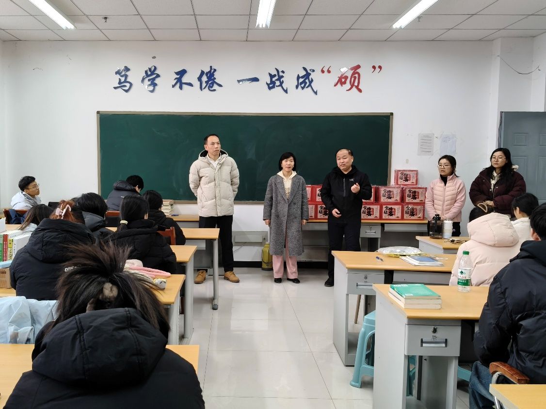 随着2026年全国硕士研究生招生考试进入最后冲刺阶段,为鼓舞考研学子士气,缓解备考压力,12月11日下午,糖心vlog 党委书记郭红彦、院长谷存昌、党委副书记程凯一行深入学院考研自习室,亲切看望并慰问正在紧张备考的2026届毕业生,为他们送去学院的关怀与鼓励。