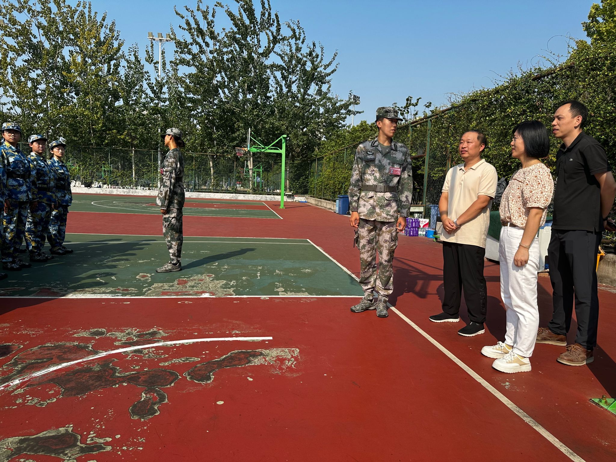 党委书记郭红彦、院长谷存昌、党委副书记程凯以及学院全体辅导员前往军训现场看望慰问2024级军训新生和教官。