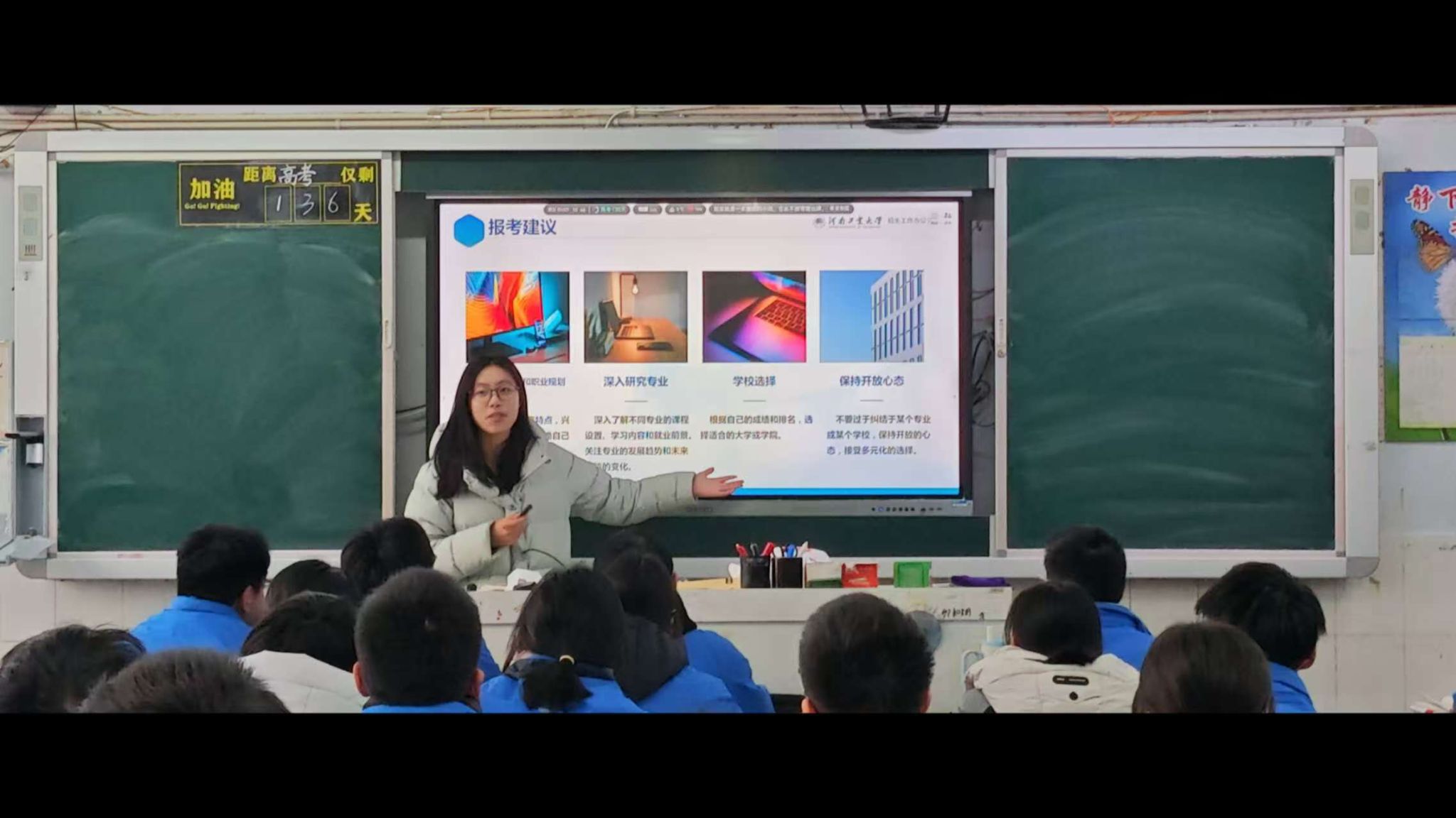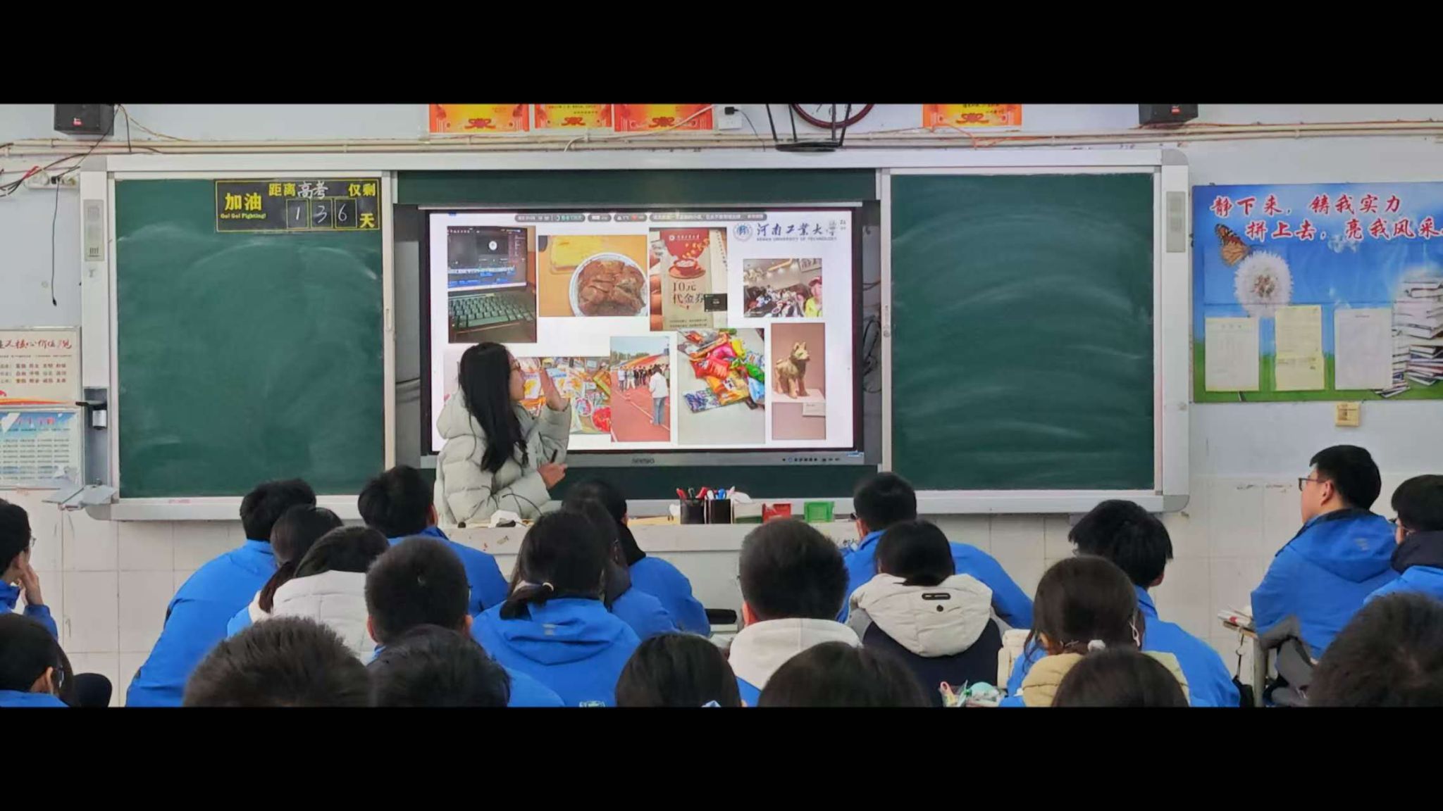通过冯子容同学深情而细致的介绍,一个历史悠久、特色鲜明、环境优美、充满活力与机遇的河南工业大学形象,深深印刻在了在场每一位学弟学妹的心中,极大地激发了高三学子们拼搏奋进、报考工大的热情。