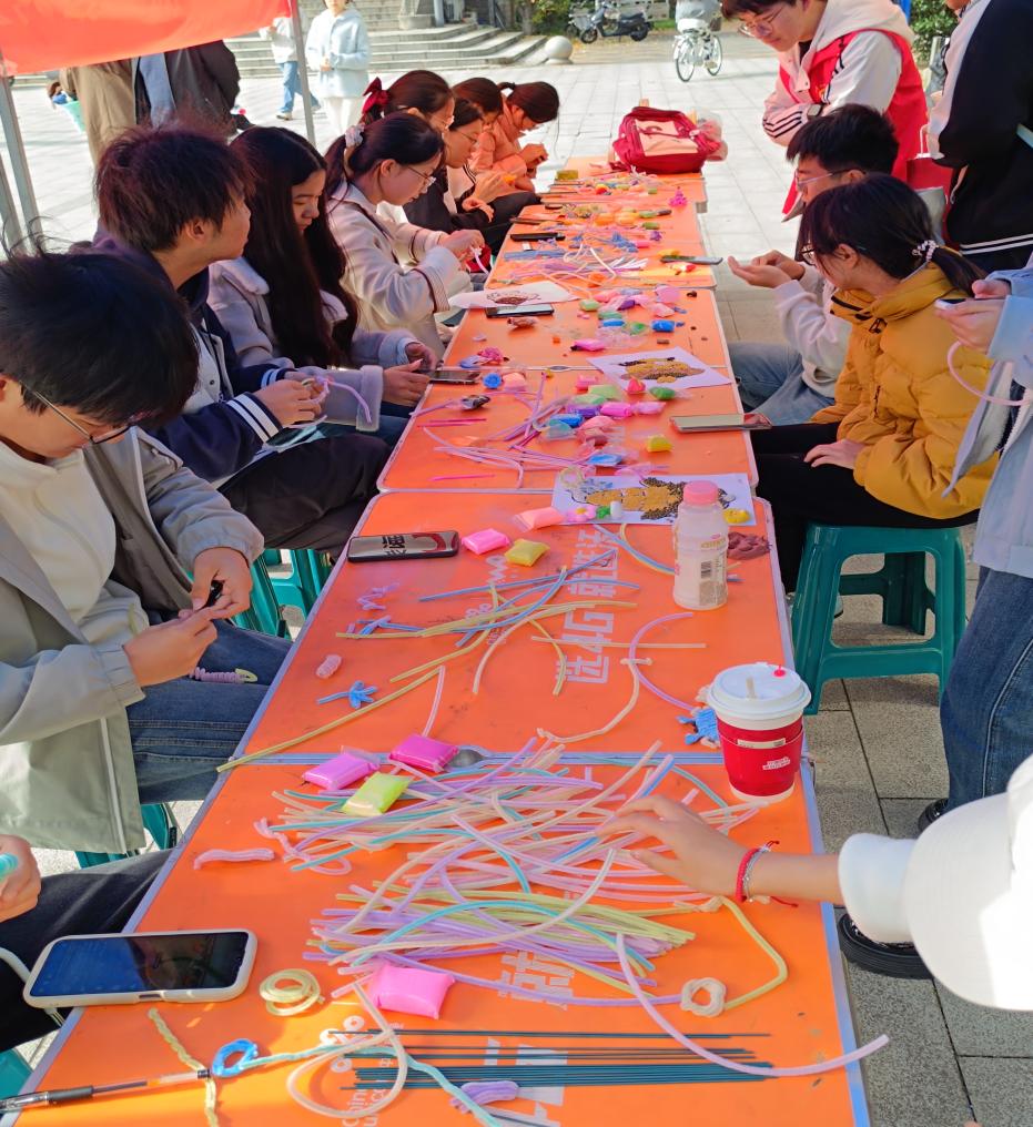 指尖生趣,心栖手作。为传递治愈能量,帮助学生释放压力,我院于11月9日在钟楼广场开展“指尖生趣,心栖手作”主题活动。活动以超轻粘土、扭扭棒为材料,面向全校学生开展手工创作。同学们暂时放下学业忙碌,自由创作或精致或个性的手工作品,过程中大家边做边交流生活趣事、倾诉压力,在轻松氛围里收获纯粹快乐。