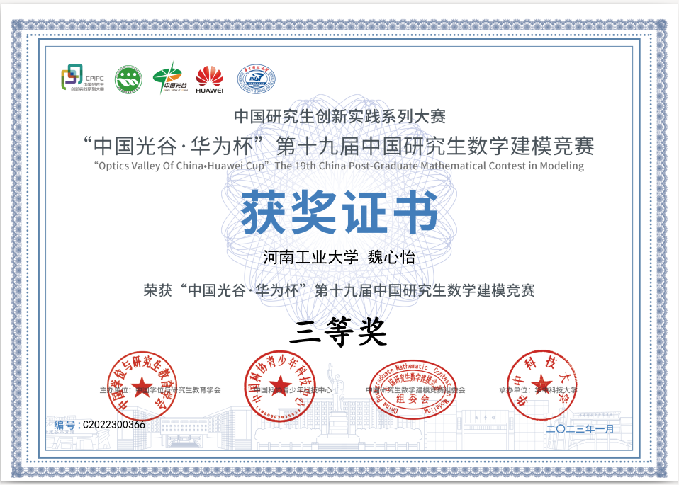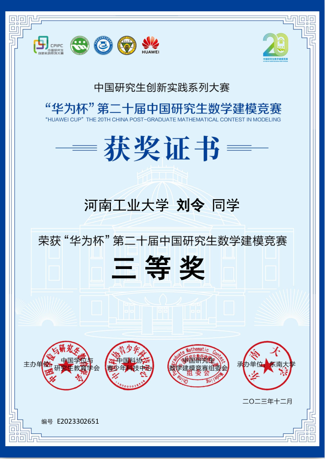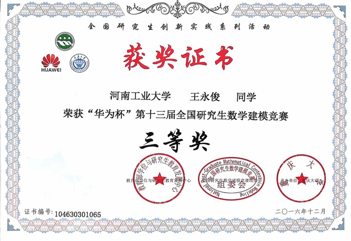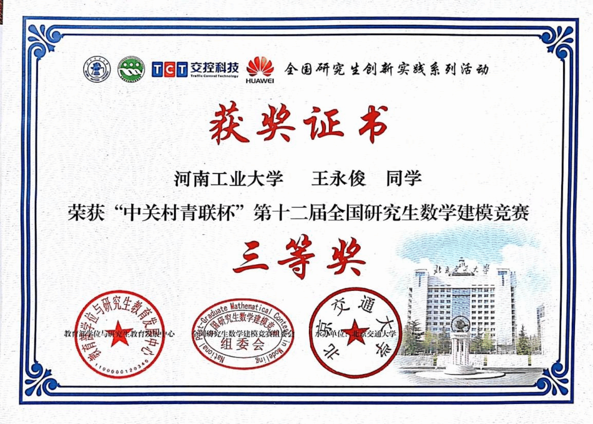 学院积极组织研究生参加数学建模竞赛,获国家级奖项7个。