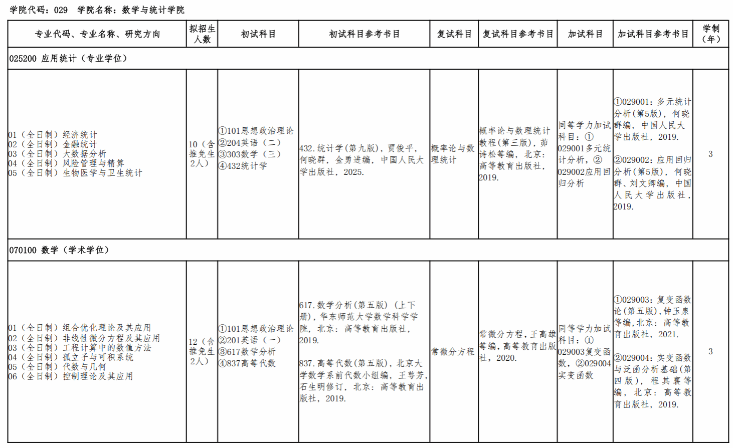 2024年应用统计专业学位硕士点获教育部批准,2025年首次招生。本硕士点服务国家战略、区域经济发展需求,依托数学、数据科学与大数据技术、粮油工程等学科交叉研究发展前沿问题,结合统计学科特色,主要开设经济统计、金融统计、大数据分析、风险管理与精算、生物医学与卫生统计等研究方向。本硕士点旨在培养德智体美劳全面发展,能够胜任粮油、生物医疗和金融等大中型企事业单位、统计局和其他党政机关从事统计和数据分析工作,并具有良好职业素养的高层次应用型统计专业人才。