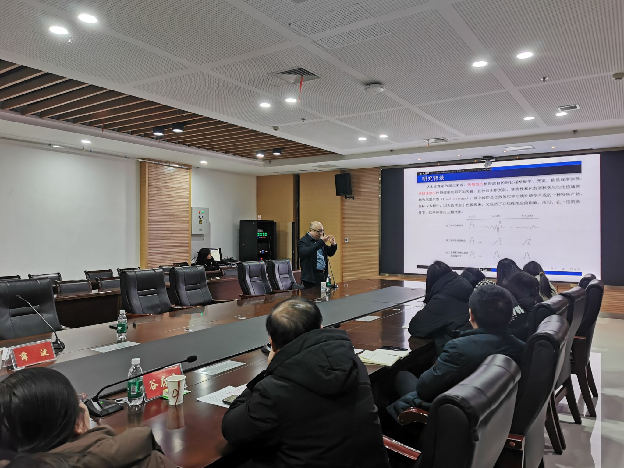 薛波以“On the integrable systems with N-peakon”为题,阐述了尖峰孤立子领域的研究背景及最新进展,介绍了具有N-Peakon的经典可积模型和几类具有N-Peakon的新可积模型。报告内容丰富、条理清晰,拓宽了师生们的学术视野,激发了创新思维。